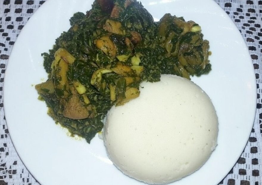 Eru can also be served with boiled plantains or rice, although fufu is the most authentic pairing.